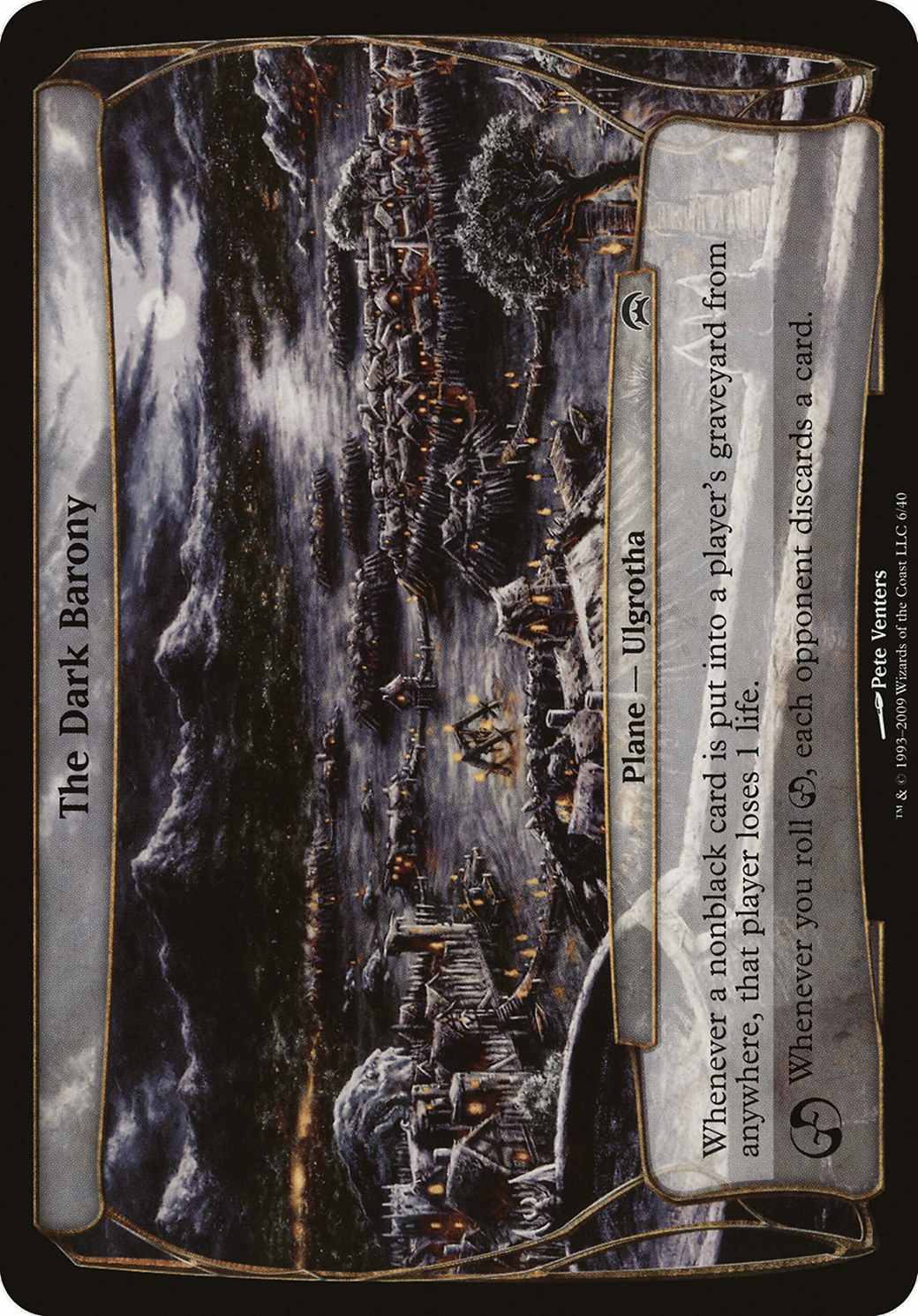 Whenever a nonblack card is put into a player’s graveyard from anywhere, that player loses 1 life. Whenever chaos ensues, each opponent discards a card.