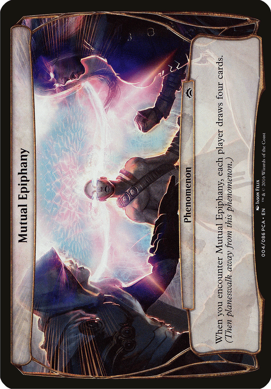 When you encounter Mutual Epiphany, each player draws four cards. (Then planeswalk away from this phenomenon.)