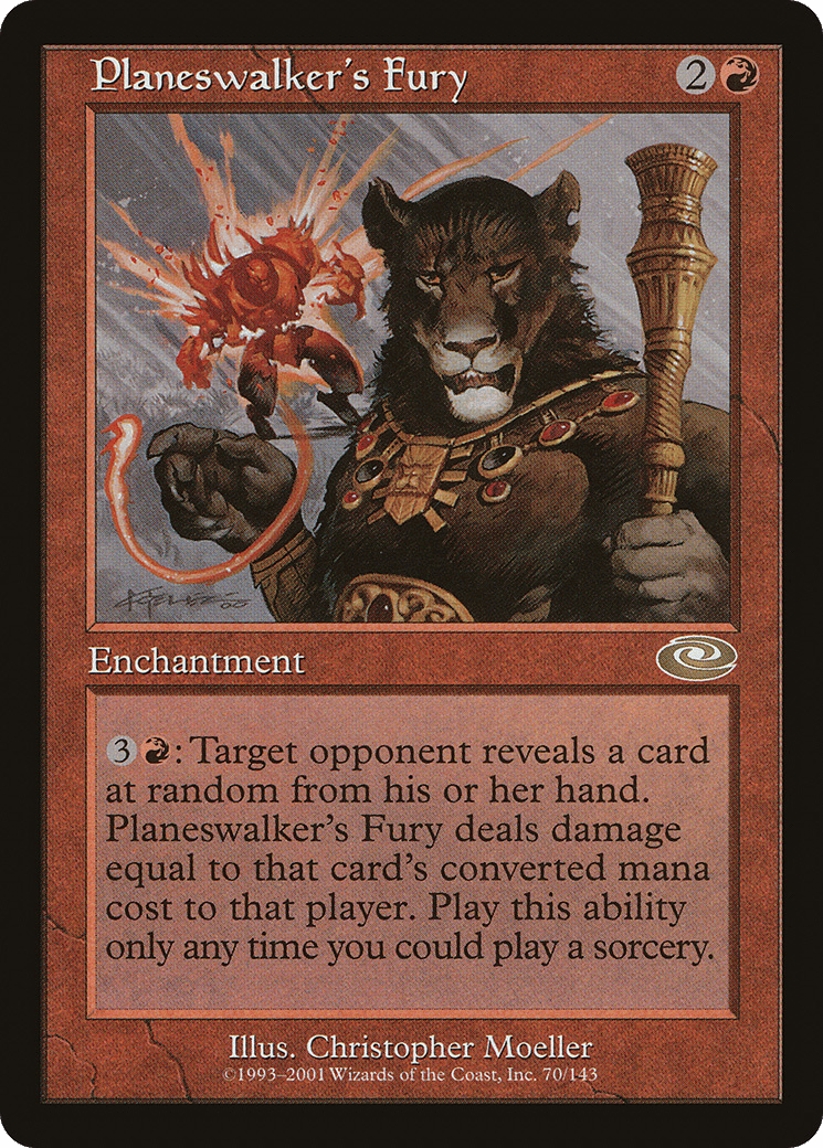 {3}{R}: Target opponent reveals a card at random from their hand. This enchantment deals damage equal to that card’s mana value to that player. Activate only as a sorcery.