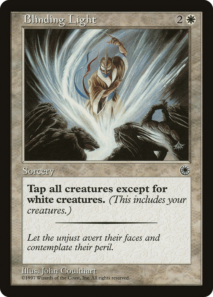 Tap all nonwhite creatures.