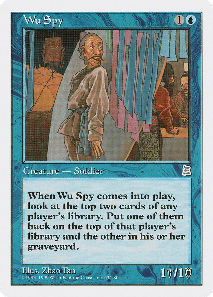 When this creature enters, look at the top two cards of target player’s library. Put one of them into their graveyard.