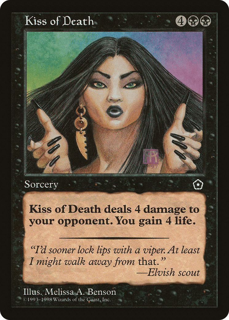 Kiss of Death deals 4 damage to target opponent or planeswalker. You gain 4 life.