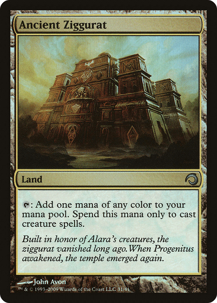 Built in honor of Alara’s creatures, the ziggurat vanished long ago. When Progenitus awakened, the temple emerged again.