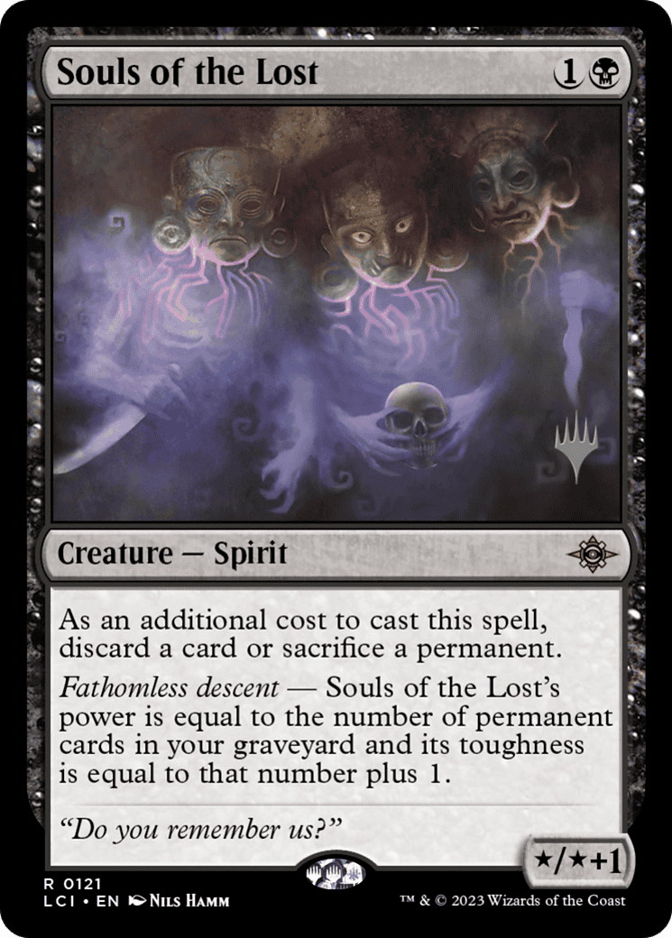 Fathomless descent – Souls of the Lost’s power is equal to the number of permanent cards in your graveyard and its toughness is equal to that number plus 1.