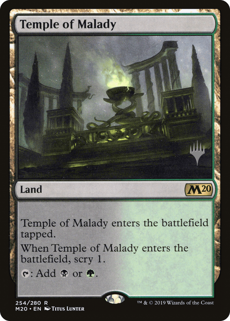 This land enters tapped. When this land enters, scry 1. (Look at the top card of your library. You may put that card on the bottom.) {T}: Add {B} or {G}.