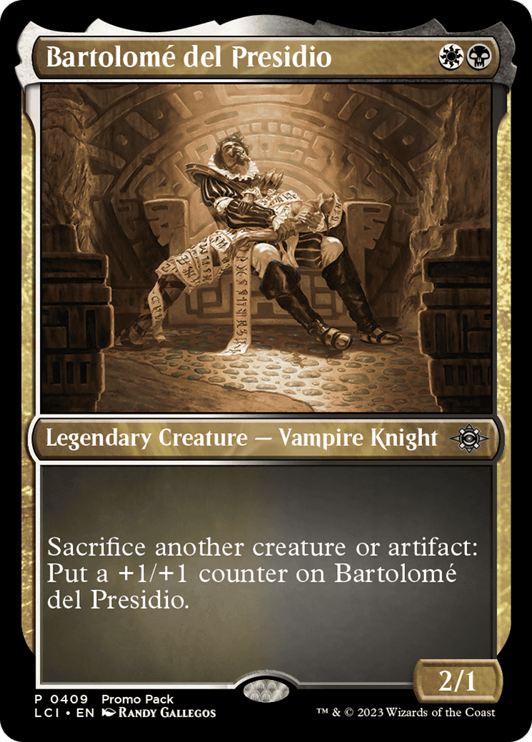 Sacrifice another creature or artifact: Put a +1/+1 counter on Bartolomé del Presidio.