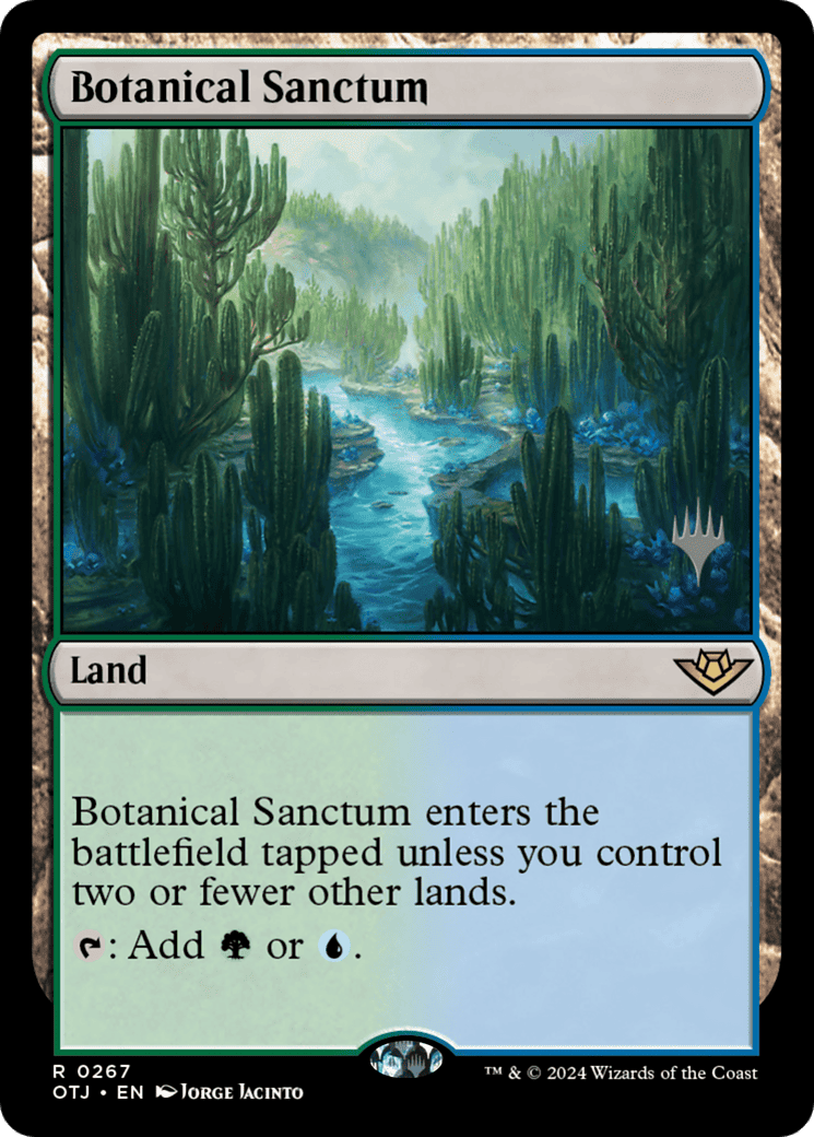 This land enters tapped unless you control two or fewer other lands. {T}: Add {G} or {U}.