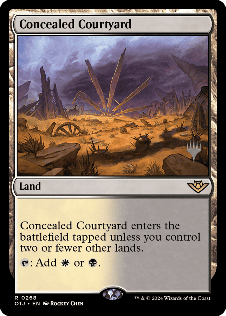 This land enters tapped unless you control two or fewer other lands. {T}: Add {W} or {B}.