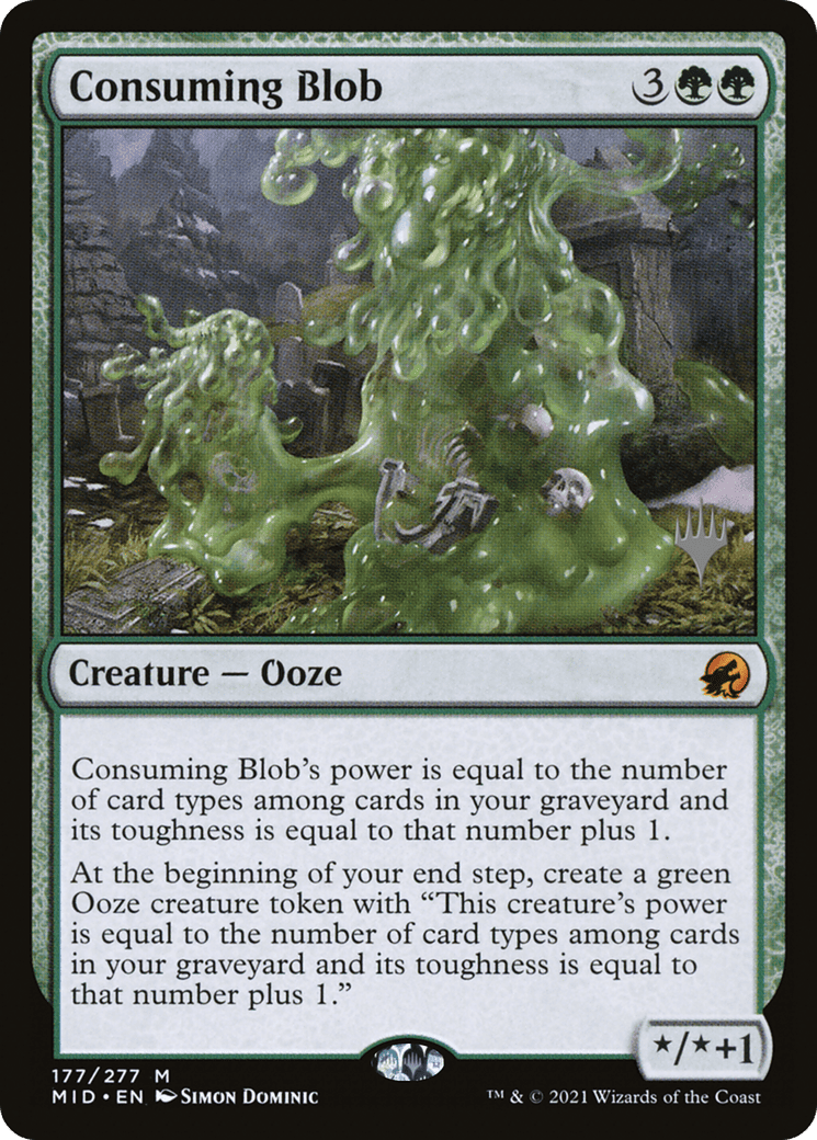 Consuming Blob’s power is equal to the number of card types among cards in your graveyard and its toughness is equal to that number plus 1.