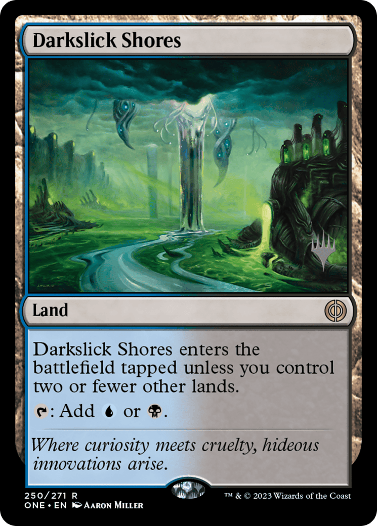 This land enters tapped unless you control two or fewer other lands. {T}: Add {U} or {B}.