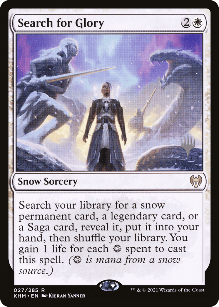 Search your library for a snow permanent card, a legendary card, or a Saga card, reveal it, put it into your hand, then shuffle. You gain 1 life for each {S} spent to cast this spell. ({S} is mana from a snow source.)