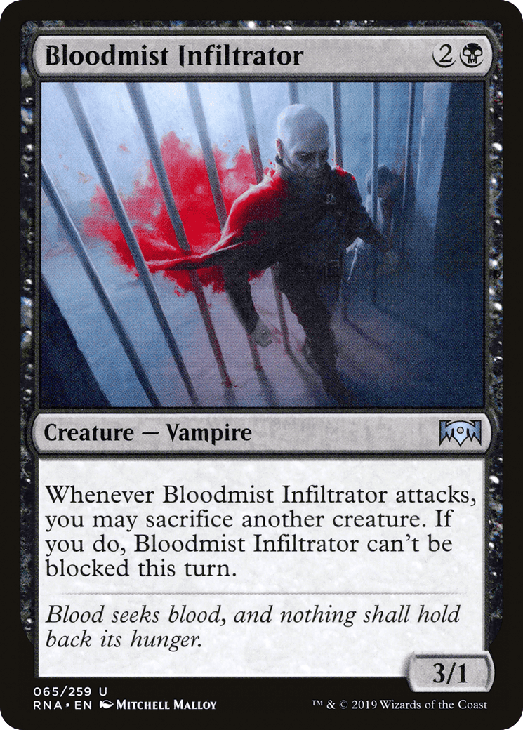 Whenever this creature attacks, you may sacrifice another creature. If you do, this creature can’t be blocked this turn.
