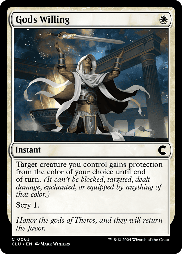 Target creature you control gains protection from the color of your choice until end of turn. (It can’t be blocked, targeted, dealt damage, enchanted, or equipped by anything of that color.)