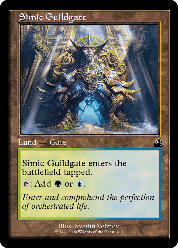 This land enters tapped. {T}: Add {G} or {U}.