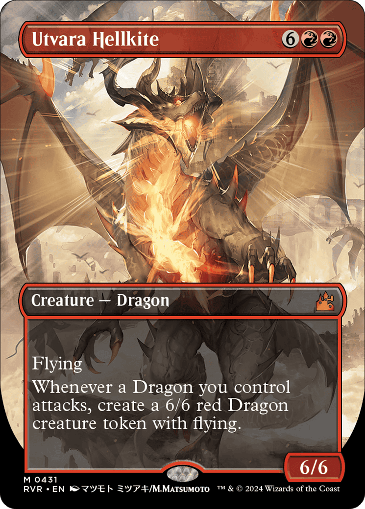 Flying Whenever a Dragon you control attacks, create a 6/6 red Dragon creature token with flying.