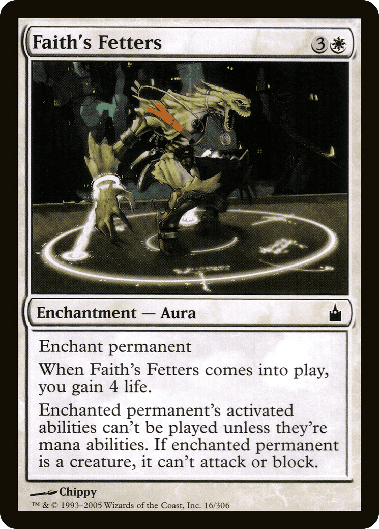 Enchant permanent When this Aura enters, you gain 4 life. Enchanted permanent can’t attack or block, and its activated abilities can’t be activated unless they’re mana abilities.