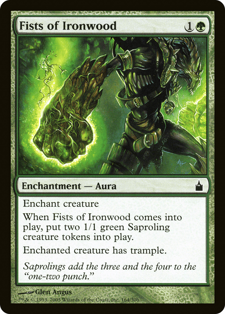 When this Aura enters, create two 1/1 green Saproling creature tokens.