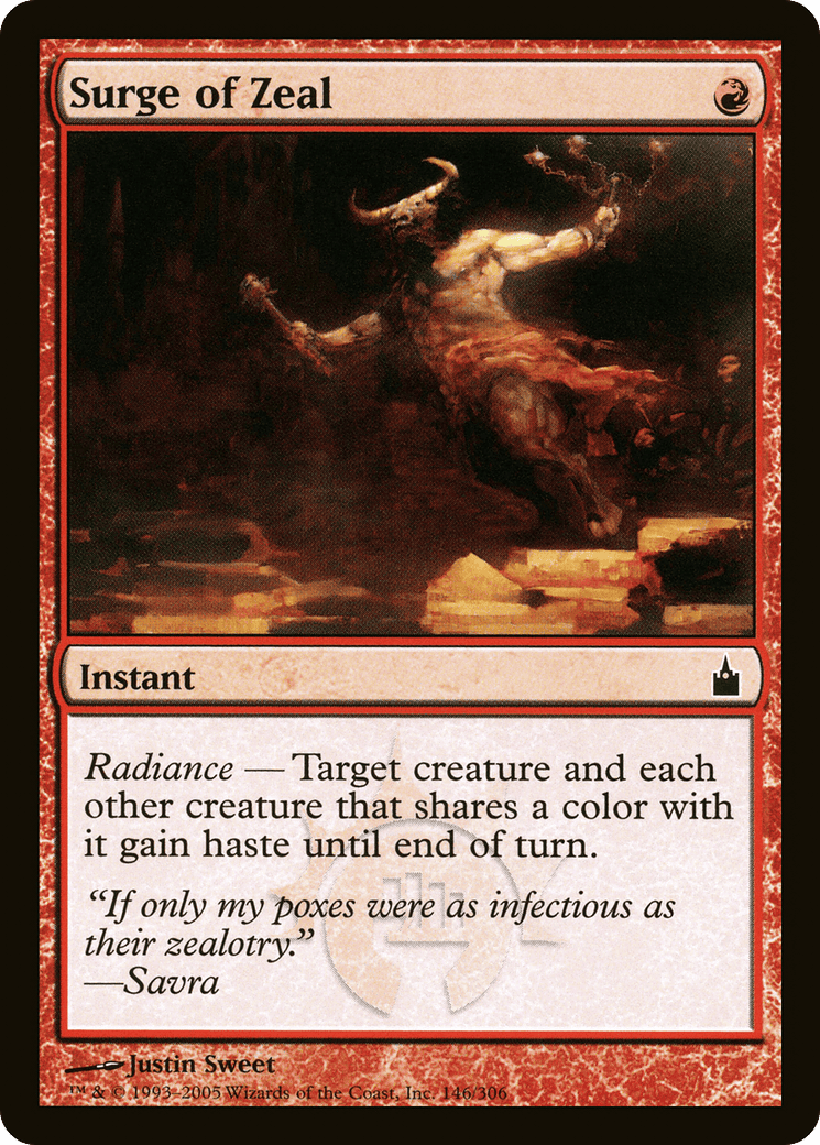 Radiance – Target creature and each other creature that shares a color with it gain haste until end of turn.