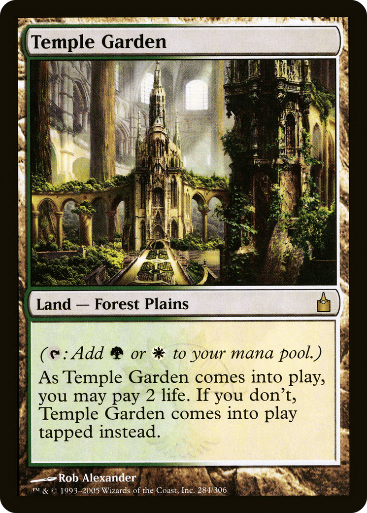 ({T}: Add {G} or {W}.) As this land enters, you may pay 2 life. If you don’t, it enters tapped.