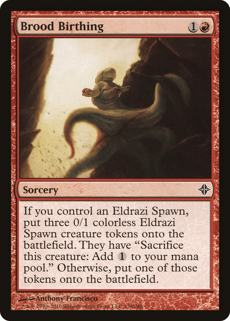 If you control an Eldrazi Spawn, create three 0/1 colorless Eldrazi Spawn creature tokens. They have “Sacrifice this token: Add {C}.” Otherwise, create one of those tokens.
