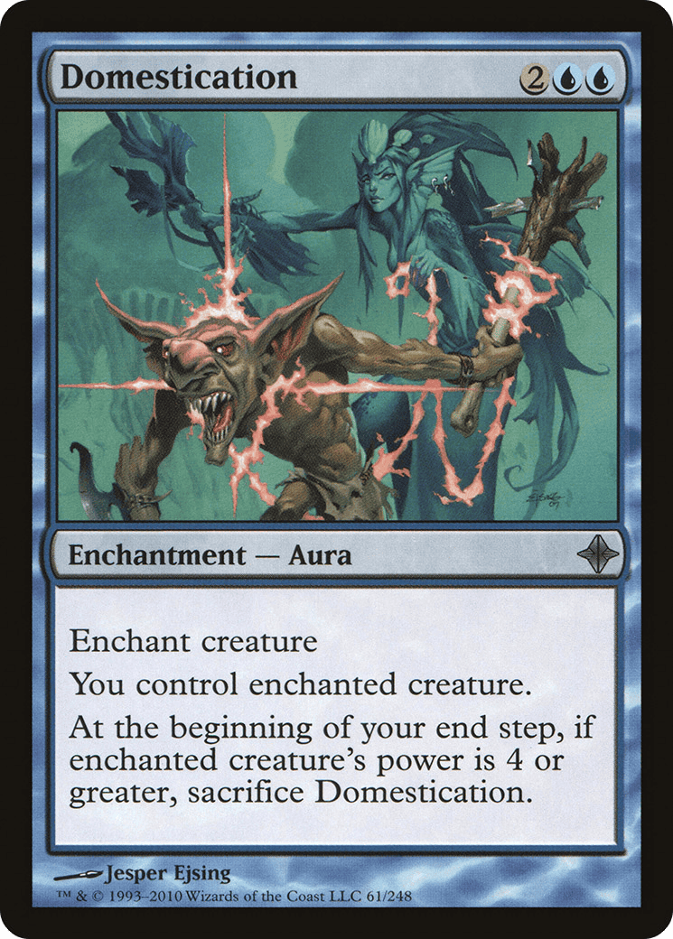 Enchant creature You control enchanted creature. At the beginning of your end step, if enchanted creature’s power is 4 or greater, sacrifice this Aura.
