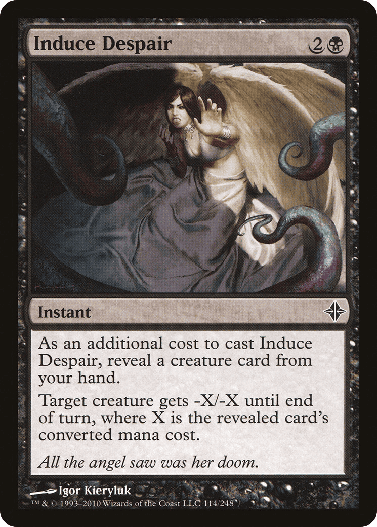Target creature gets -X/-X until end of turn, where X is the revealed card’s mana value.