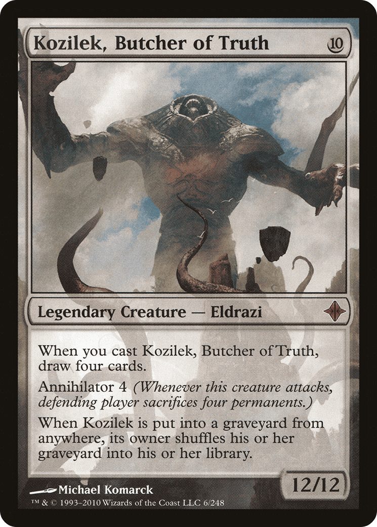 When Kozilek is put into a graveyard from anywhere, its owner shuffles their graveyard into their libra