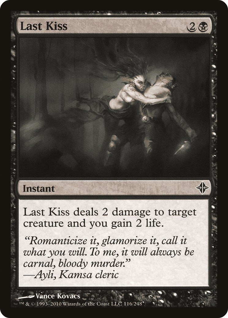 Last Kiss deals 2 damage to target creature and you gain 2 life.