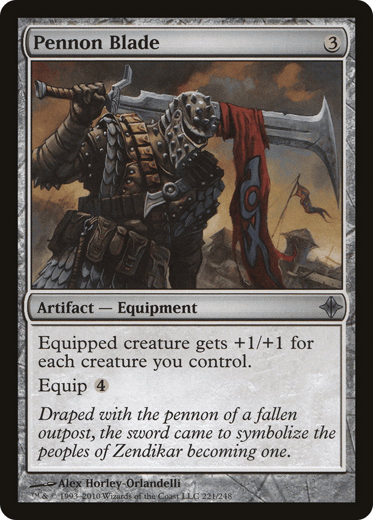 Draped with the pennon of a fallen outpost, the sword came to symbolize the peoples of Zendikar becoming one.