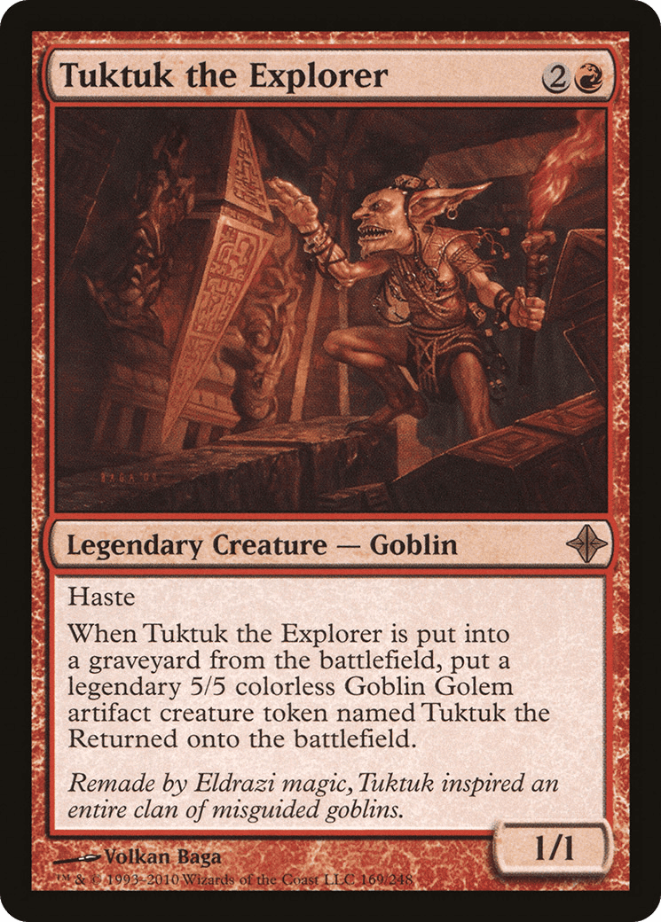 When Tuktuk the Explorer dies, create Tuktuk the Returned, a legendary 5/5 colorless Goblin Golem artifact creature token.