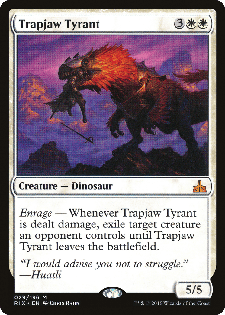 Enrage – Whenever this creature is dealt damage, exile target creature an opponent controls until this creature leaves the battlefield.
