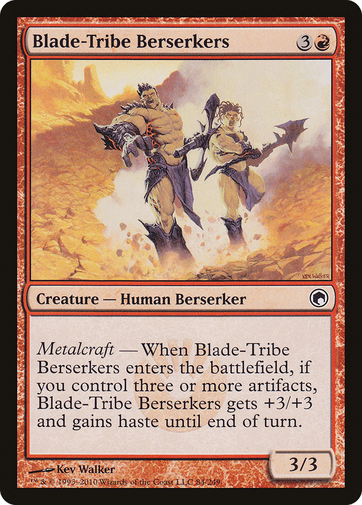 Metalcraft – When this creature enters, if you control three or more artifacts, this creature gets +3/+3 and gains haste until end of turn.
