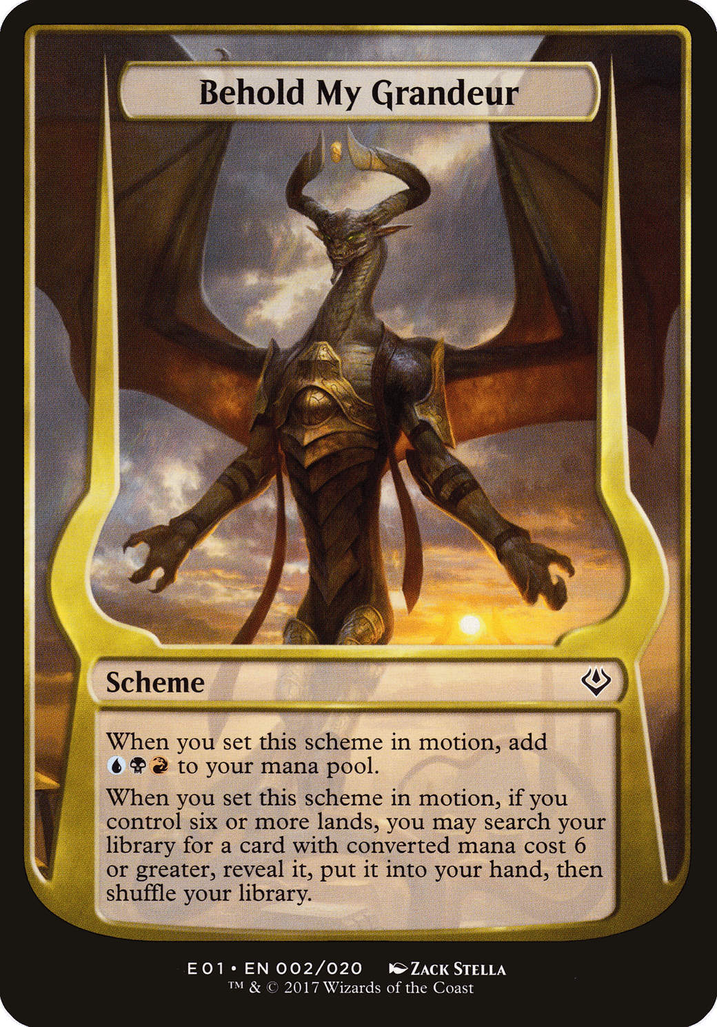When you set this scheme in motion, if you control six or more lands, you may search your library for a card with mana value 6 or greater, reveal it, put it into your hand, then shuffle.