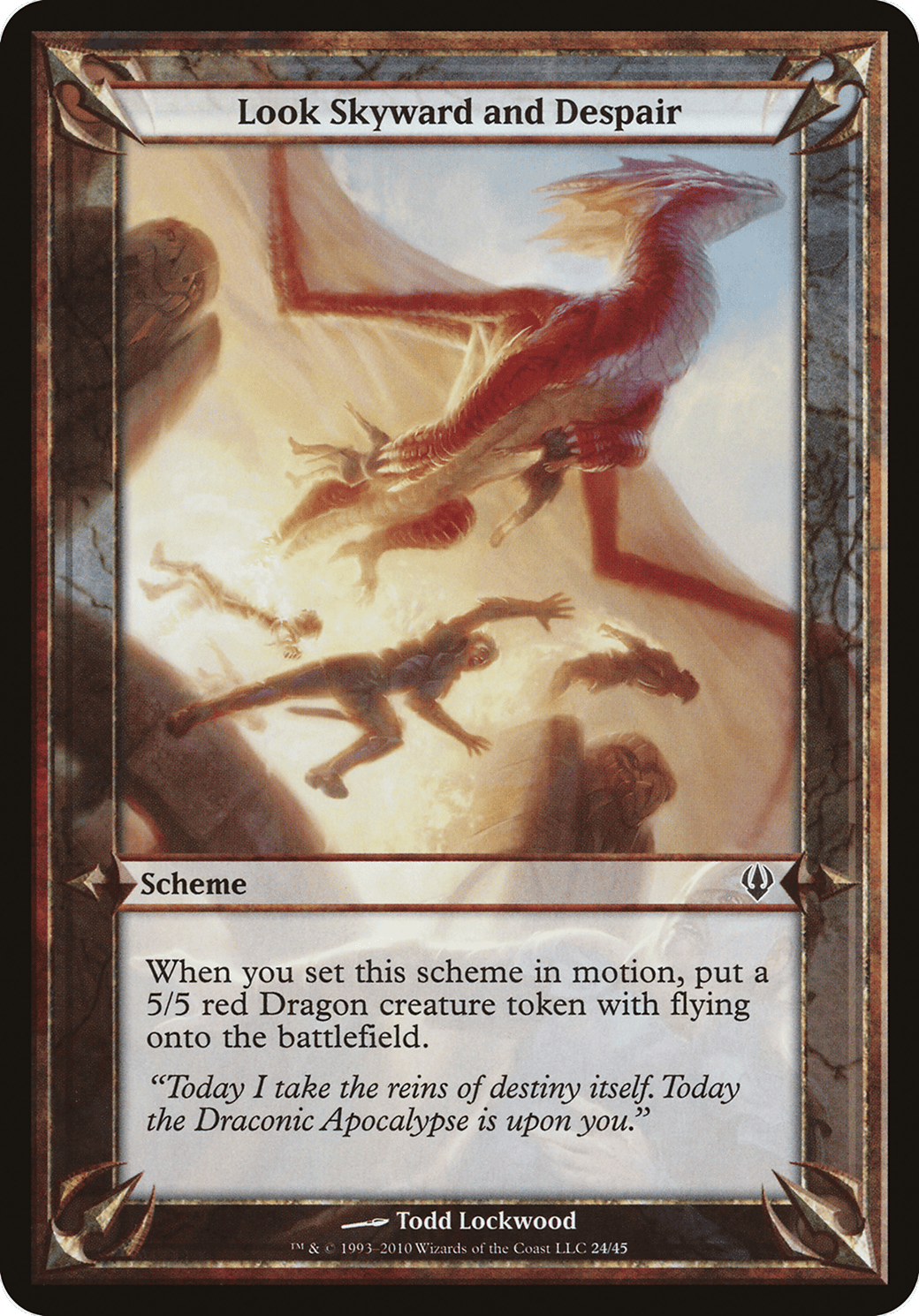 When you set this scheme in motion, create a 5/5 red Dragon creature token with flying.