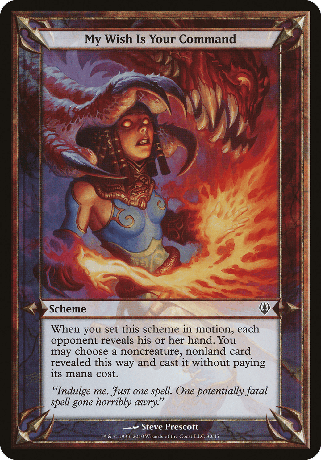 When you set this scheme in motion, each opponent reveals their hand. You may choose a noncreature, nonland card revealed this way and cast it without paying its mana cost.