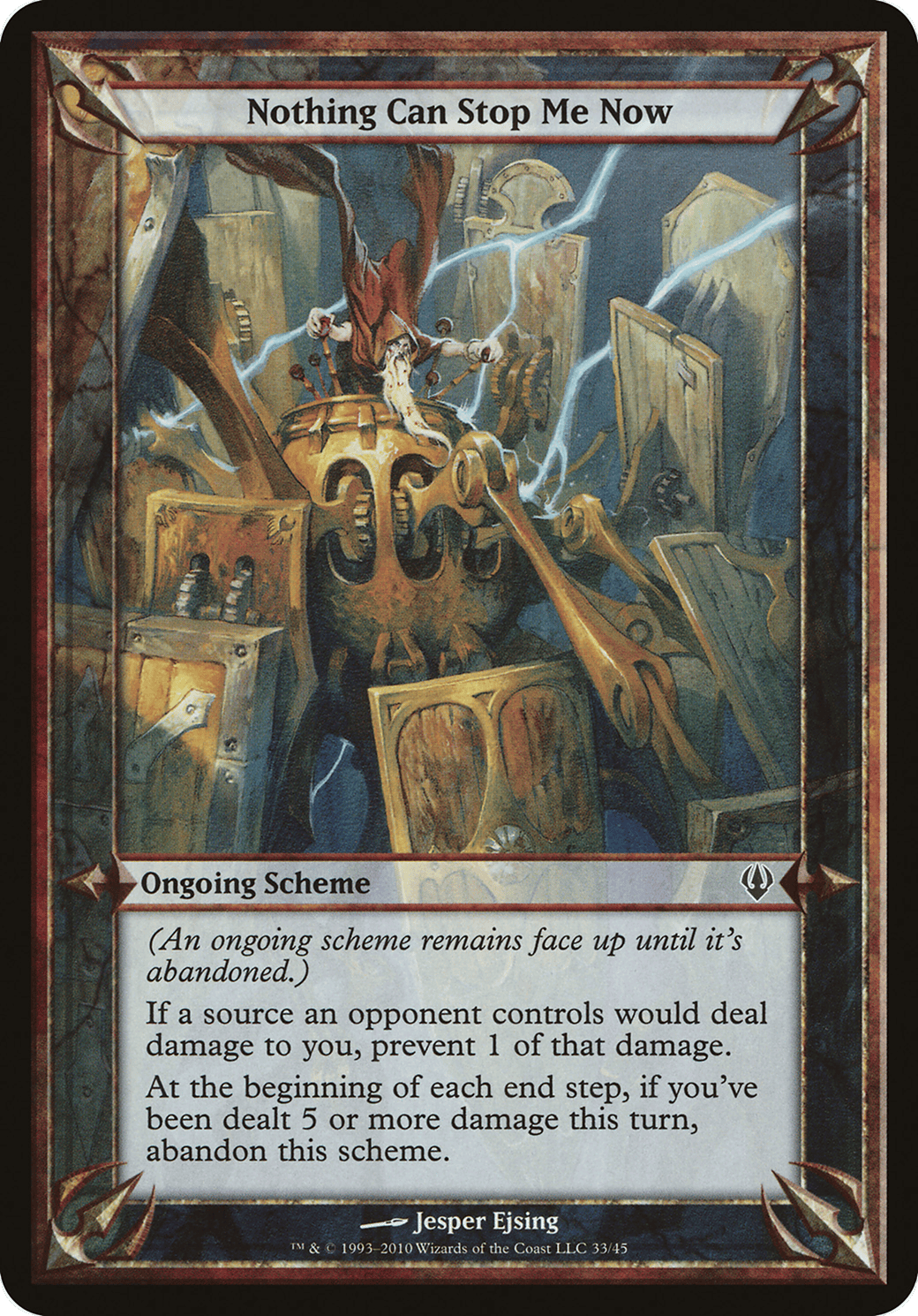 At the beginning of each end step, if you’ve been dealt 5 or more damage this turn, abandon this scheme.