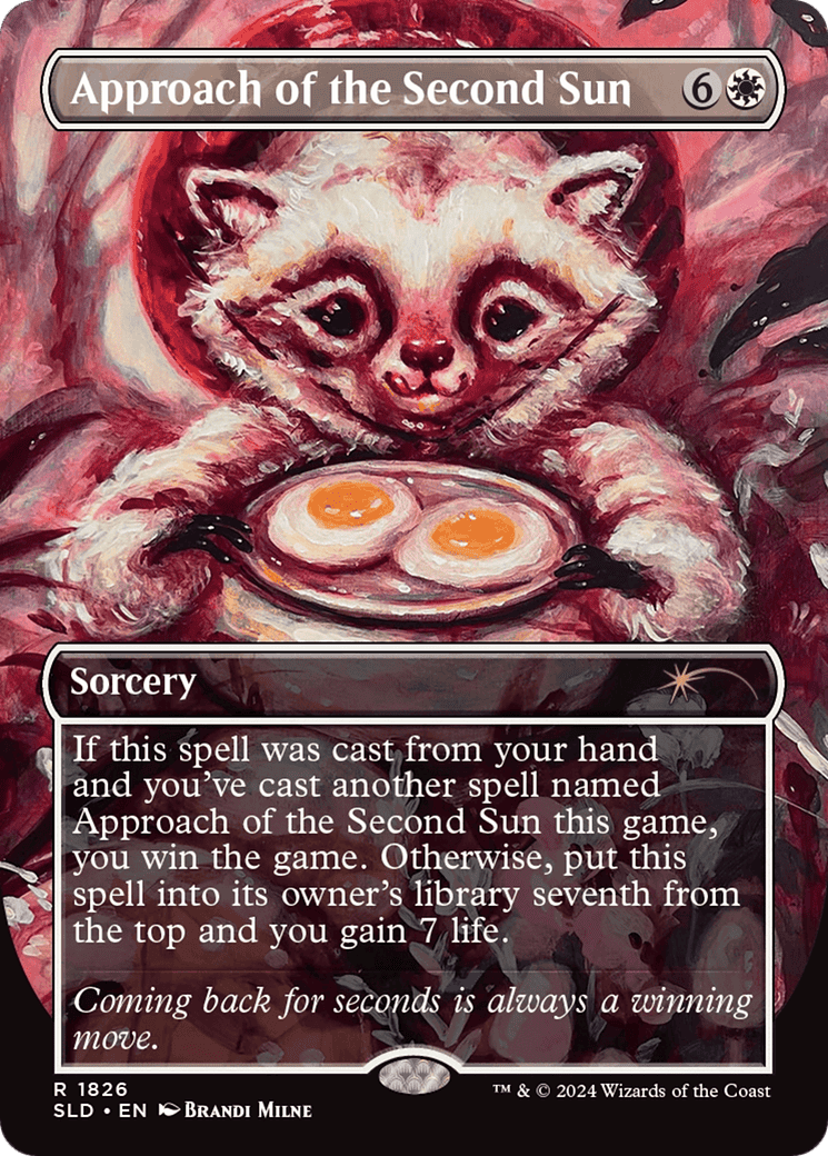 If this spell was cast from your hand and you’ve cast another spell named Approach of the Second Sun this game, you win the game. Otherwise, put Approach of the Second Sun into its owner’s library seventh from the top and you gain 7 life.
