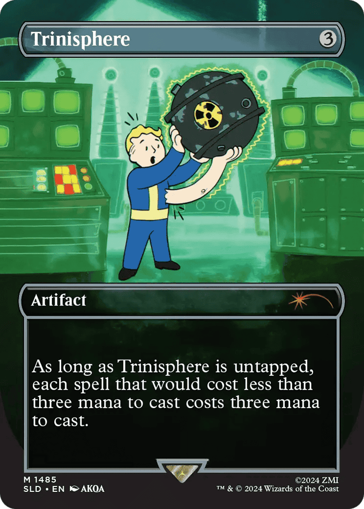 As long as this artifact is untapped, each spell that would cost less than three mana to cast costs three mana to cast. (Additional mana in the cost may be paid with any color of mana or colorless mana. For example, a spell that would cost {1}{B} to cast