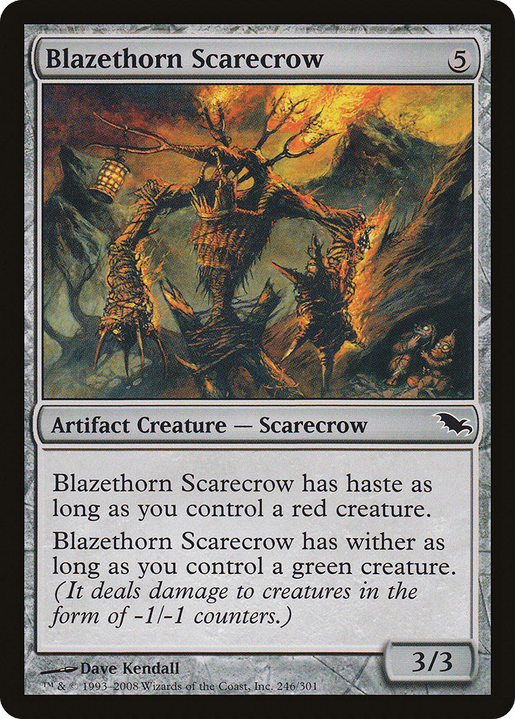 This creature has wither as long as you control a green creature. (It deals damage to creatures in the form of -1/-1 counters.)