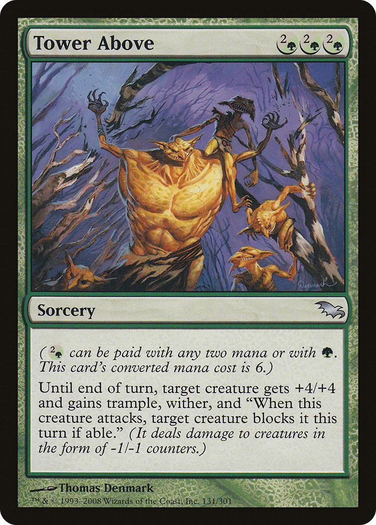 Until end of turn, target creature gets +4/+4 and gains trample, wither, and “When this creature attacks, target creature blocks it this turn if able.” (It deals damage to cre