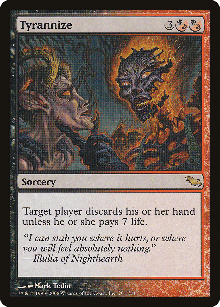 Target player discards their hand unless they pay 7 life.