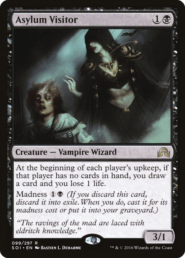 Madness {1}{B} (If you discard this card, discard it into exile. When you do, cast it for its madness cost or put it into your graveyard.)