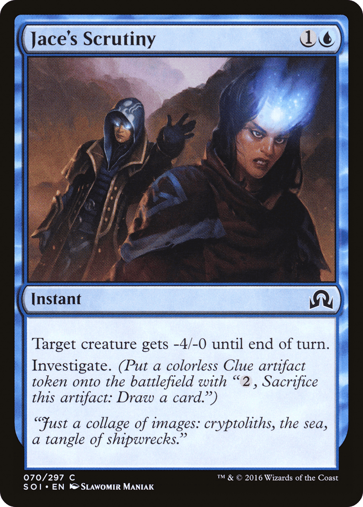 Investigate. (Create a Clue token. It’s an artifact with “{2}, Sacrifice this token: Draw a card.”)