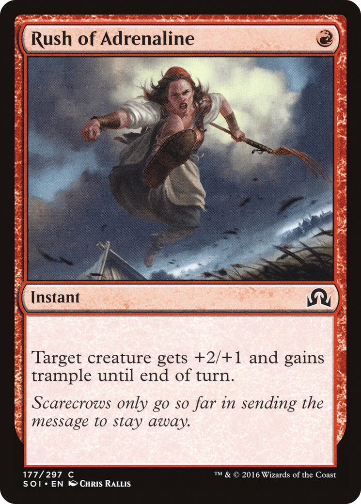 Target creature gets +2/+1 and gains trample until end of turn.
