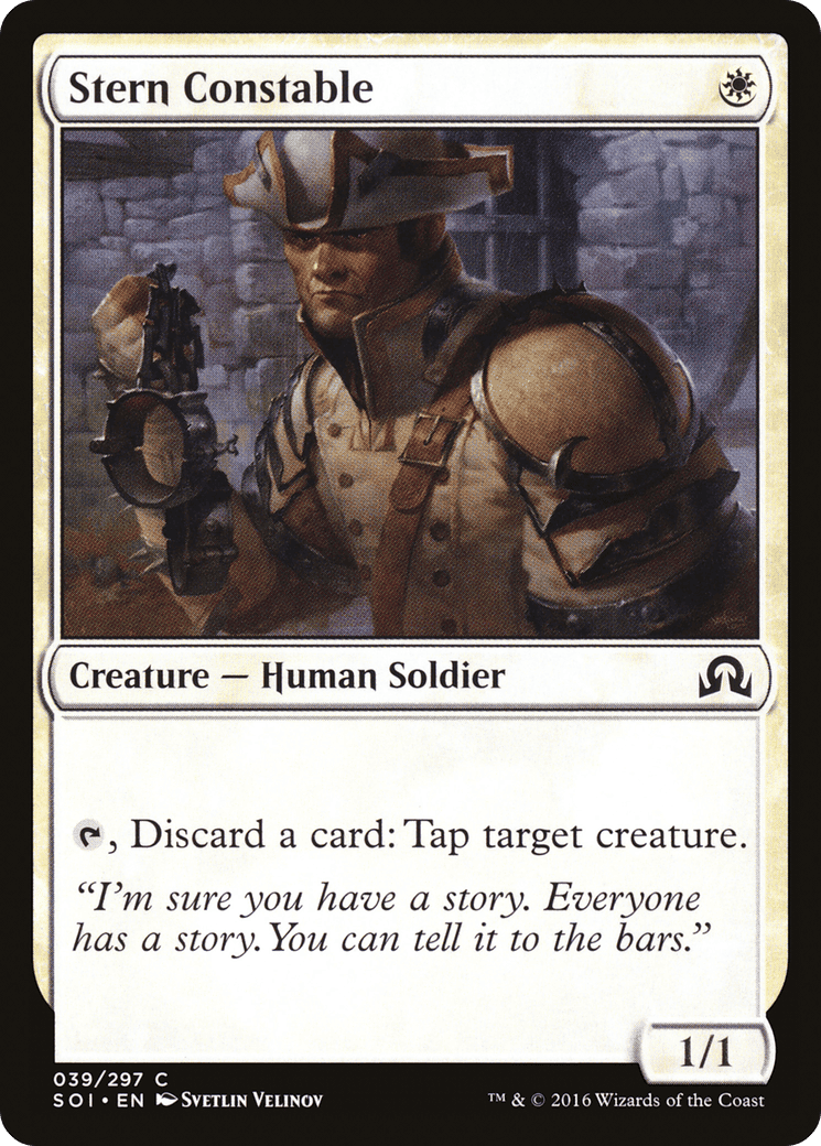 {T}, Discard a card: Tap target creature.