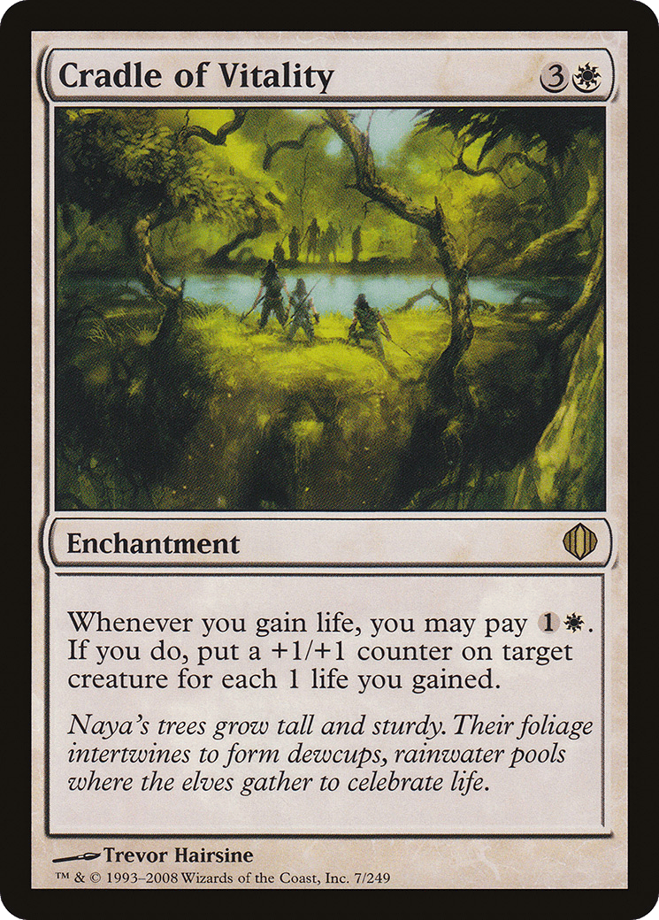Whenever you gain life, you may pay {1}{W}. If you do, put a +1/+1 counter on target creature for each 1 life you gained.