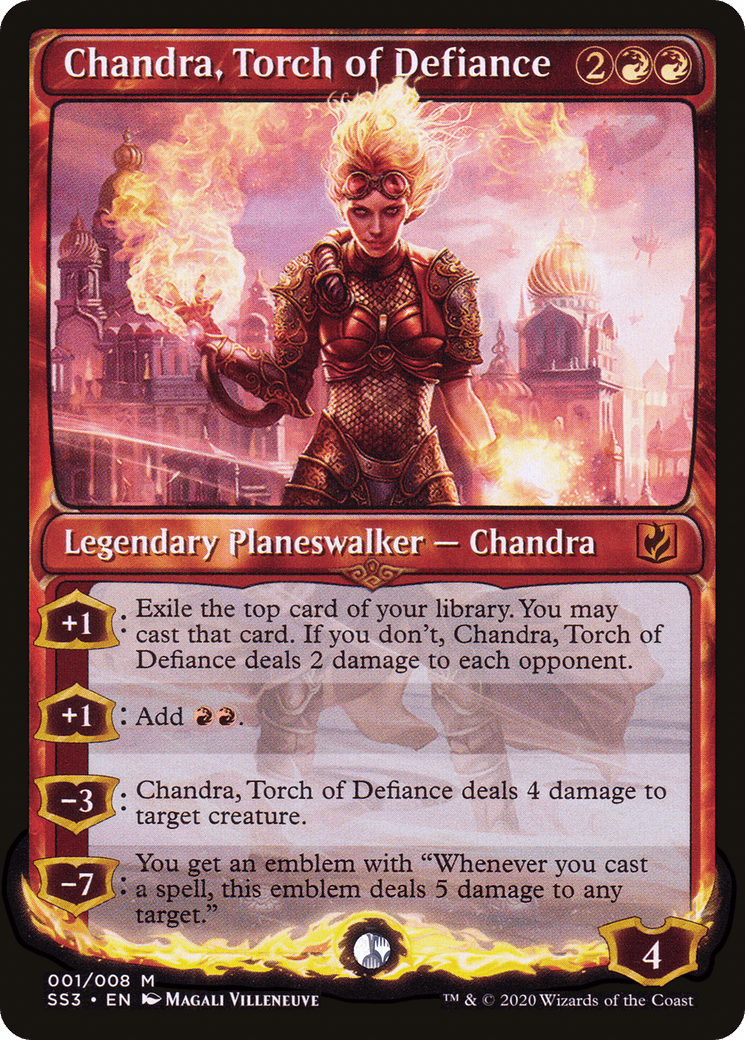 +1: Exile the top card of your library. You may cast that card. If you don’t, Chandra deals 2 damage to each opponent.
