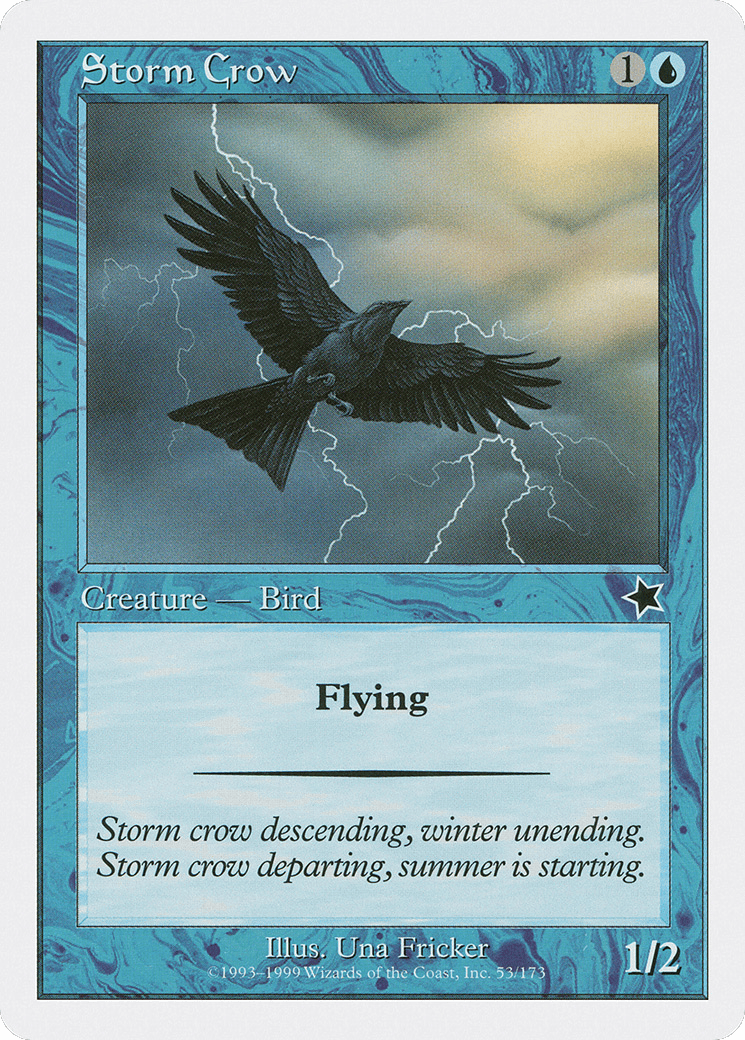 Storm crow descending, winter unending. Storm crow departing, summer is starting.