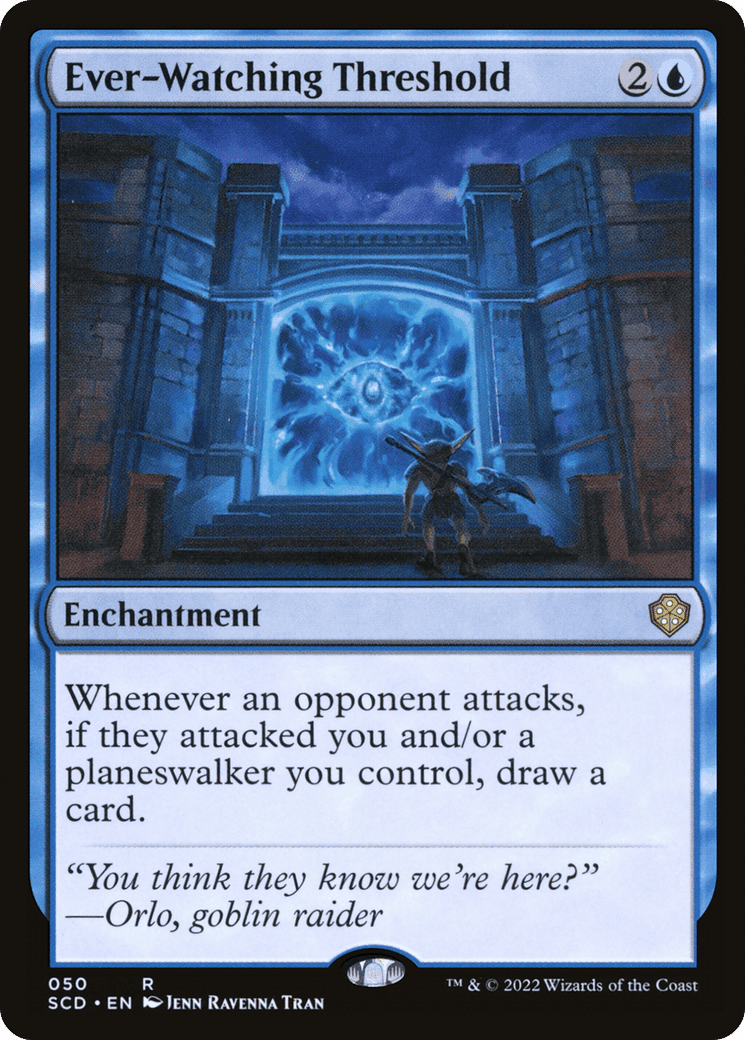 Whenever an opponent attacks, if they attacked you and/or a planeswalker you control, draw a card.