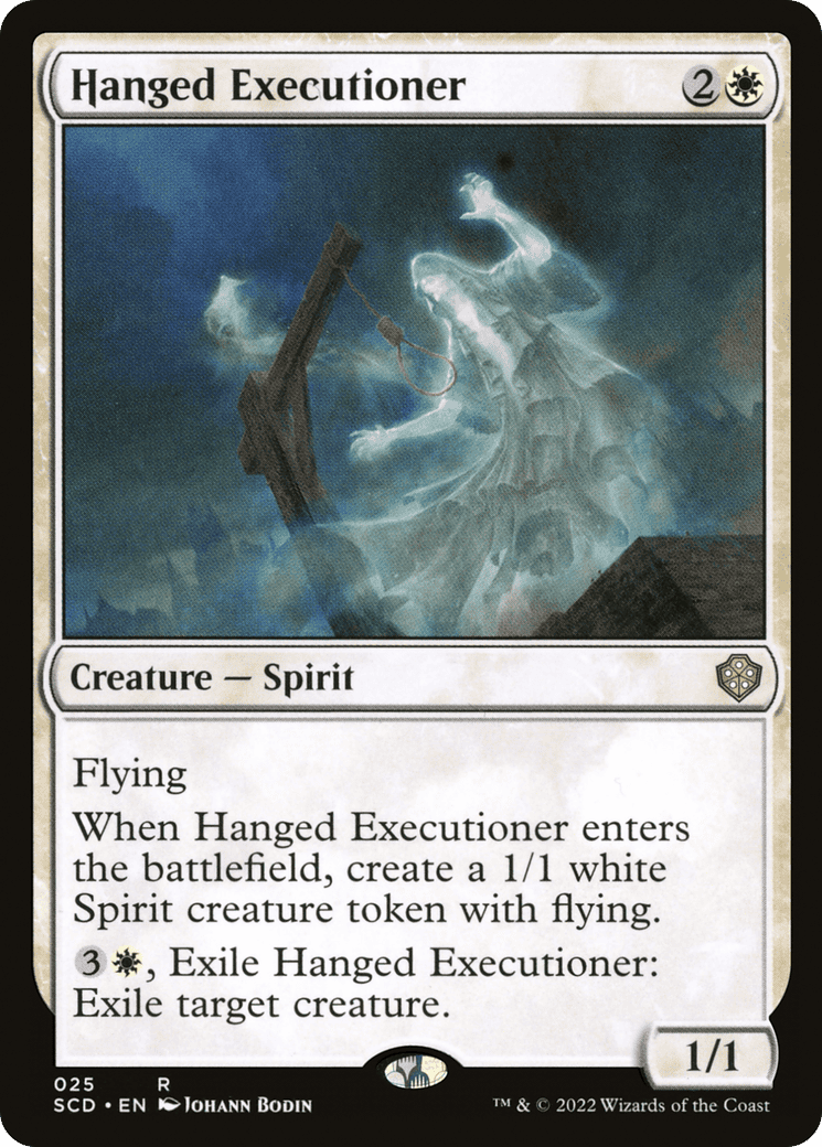 Flying When this creature enters, create a 1/1 white Spirit creature token with flying. {3}{W}, Exile this creature: Exile target creature.